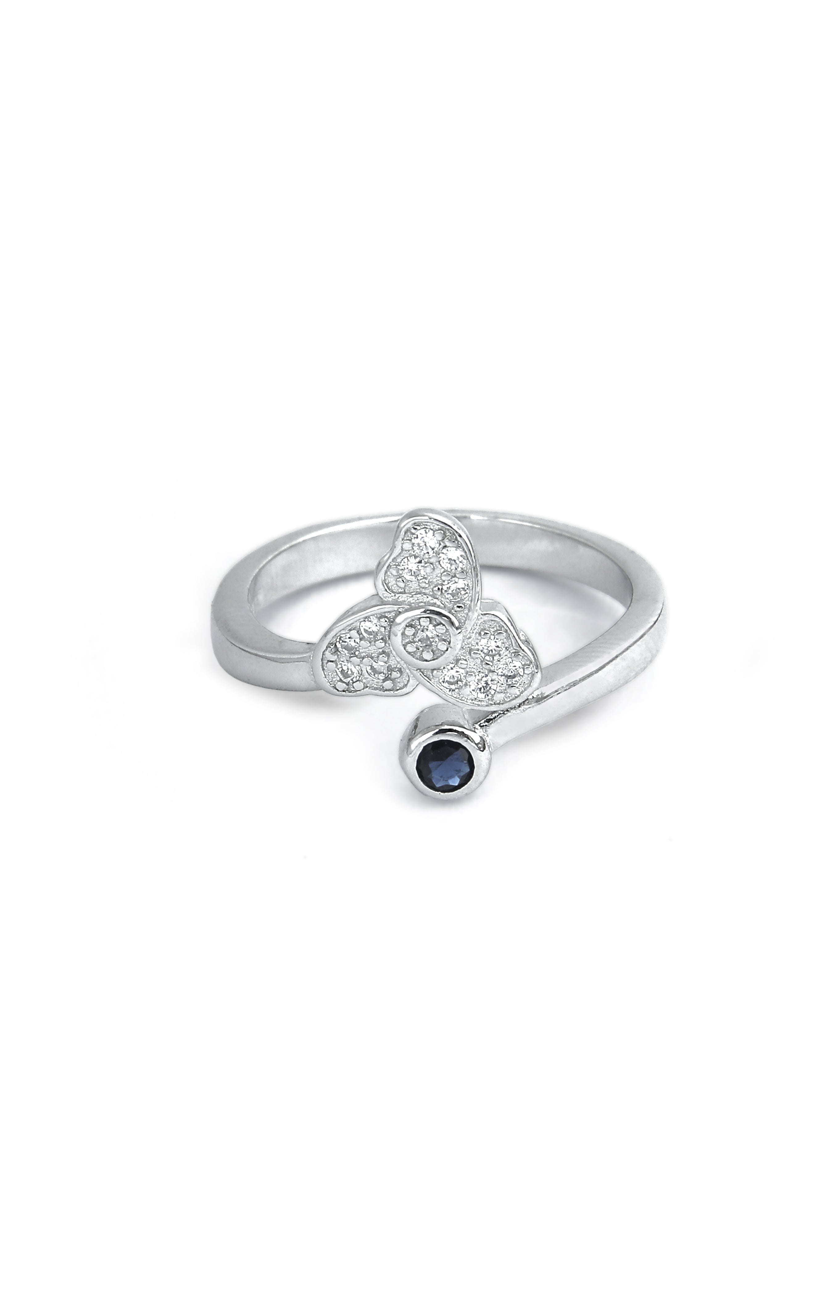 Three sparkling hearts, one bold blue — this ring is basically a love triangle you want to be part of. Flirty, classy, and totally crush-worthy!