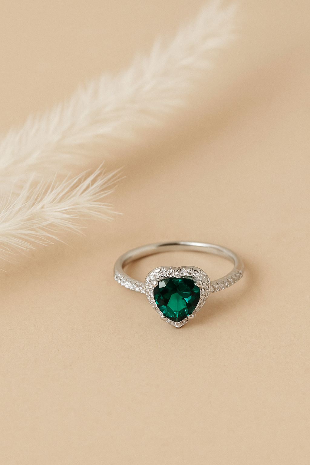 Add a splash of charm to your style with the Emerald Heart Ring! This playful piece features a vibrant emerald centerpiece shaped like a heart, perfect for expressing your fun and flirty side. Whether you're dressing up or keeping it casual, this ring brings a pop of color and a touch of whimsy to any outfit. Let your fingers do the talking with this delightful symbol of love and joy.