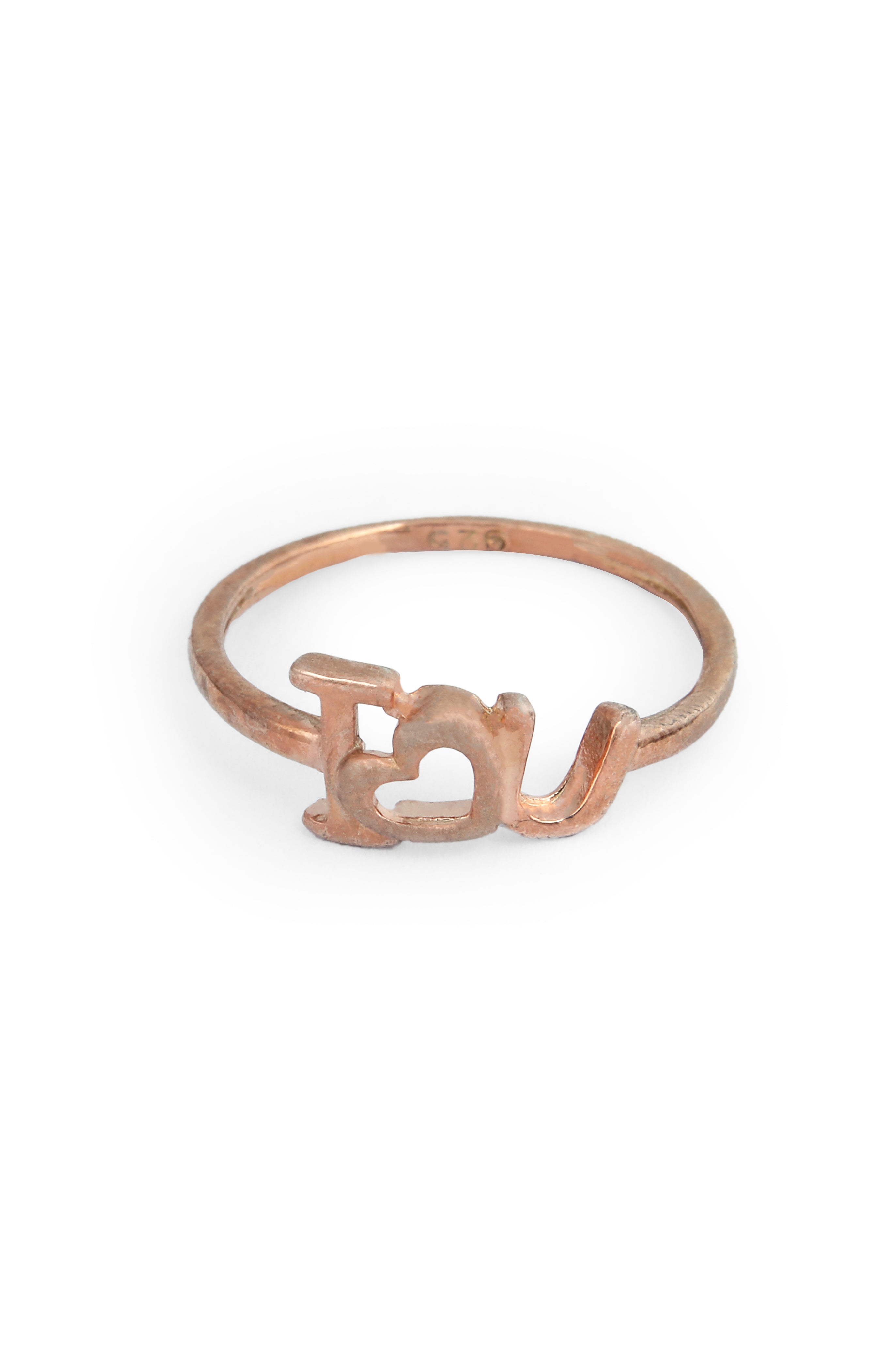 Why text it when you can wear it? This flirty little ring says I ♥ U in the cutest shorthand—perfect for lovebirds or serial romantics with great taste!