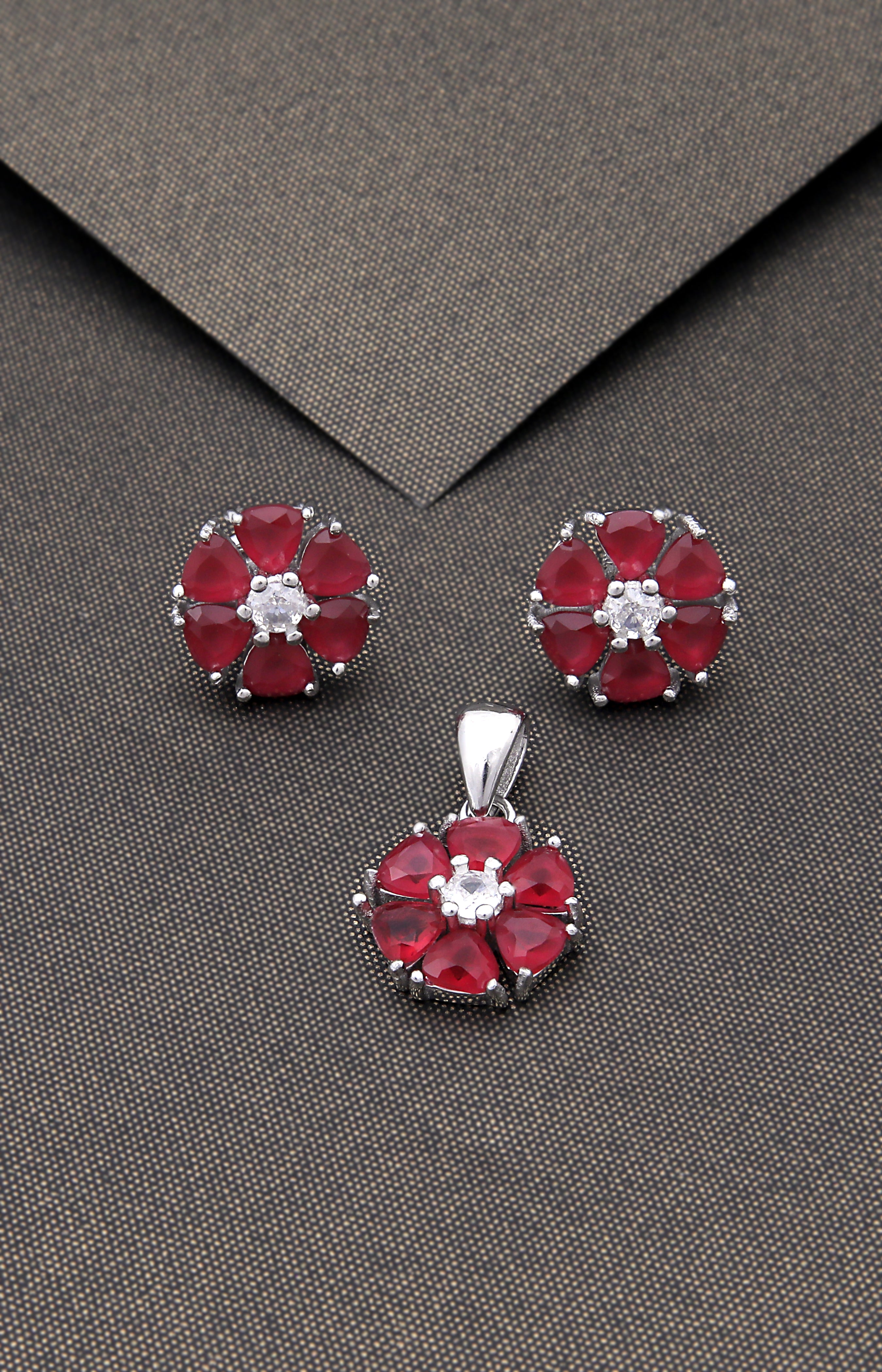 A striking floral set that radiates passion and elegance. The rich ruby-red stones form delicate petals around a luminous centerpiece, creating a timeless jewel perfect for evening glamour or heartfelt gifting.