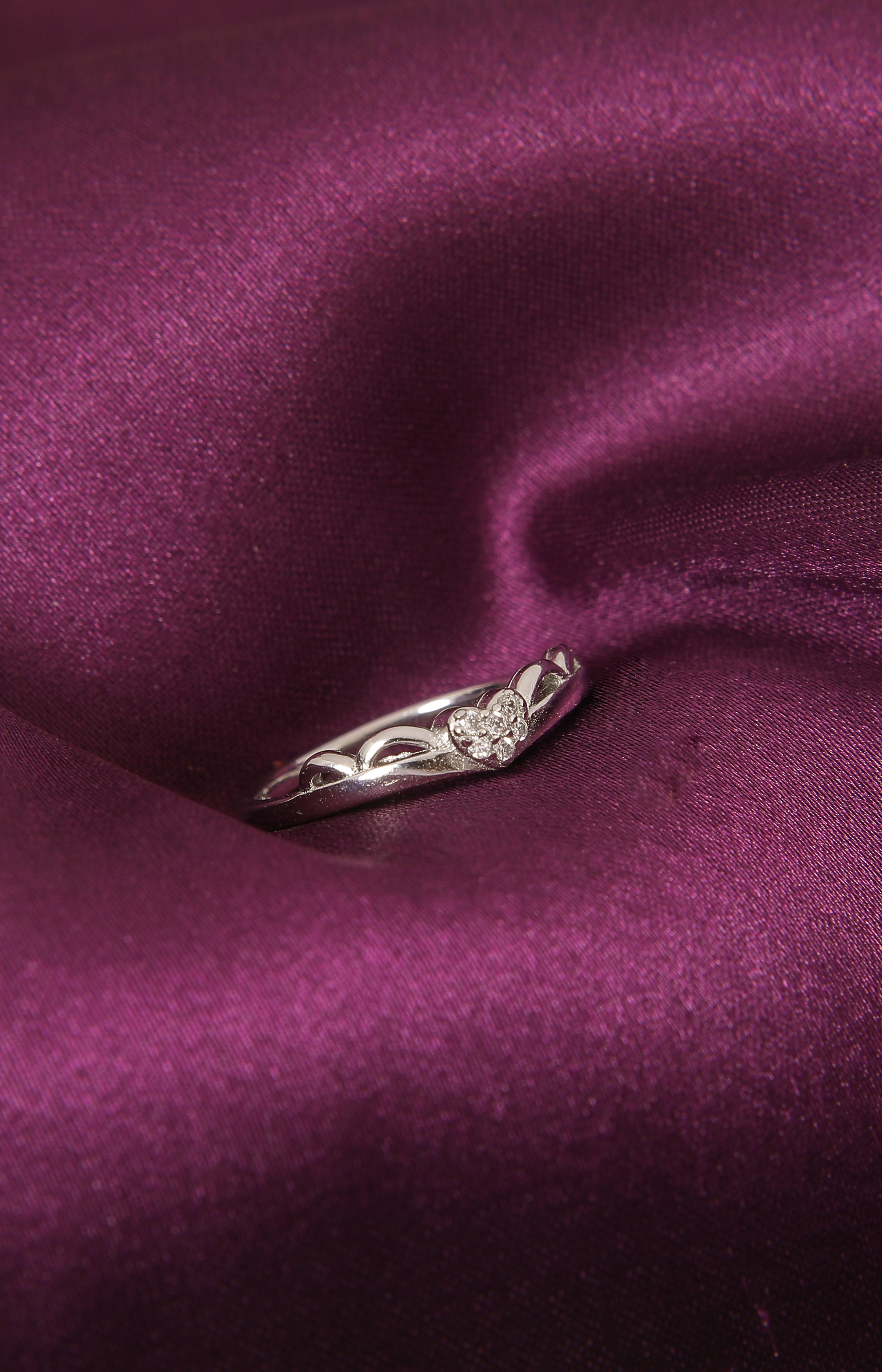 Gracefully arched like a silver moonbeam and crowned with a heart-shaped sparkle, this ring is basically a love letter in jewelry form. Wear it when you want your fingers to whisper, “I’m elegant... but also a hopeless romantic.”